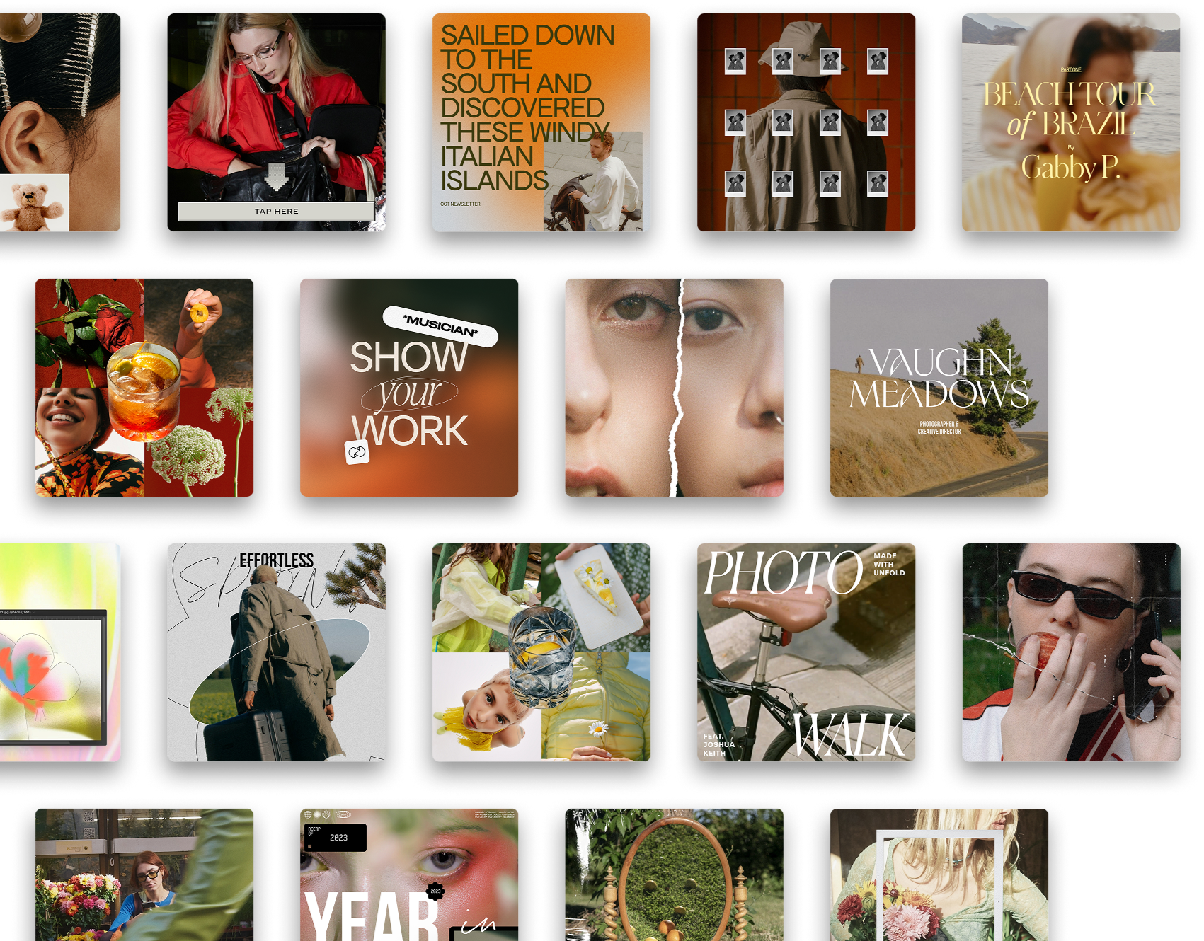A template collection designed for the Unfold app, featuring 17 animated story templates and 17 animated post templates. Launched in September 2023 in the Unfold app.